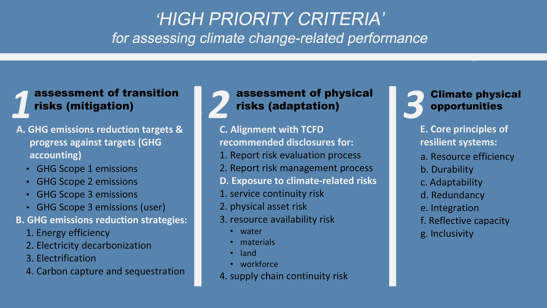 • potential recommendations to Envision on how to address the identified gaps and enhance its climate-related assessment and guidance, and